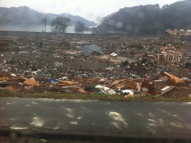 バスで現地視察。衝撃を受けた人が多い様子。